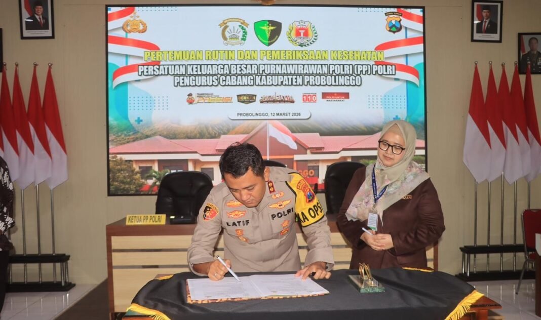Probolinggo, Satpres.com Seksi Kedokteran dan Kesehatan (SiDokkes) Polres Probolinggo melaksanakan kegiatan pertemuan rutin sekaligus skrining kesehatan bagi anggota Polri, purnawirawan Polri beserta keluarga di Ruang Rupatama Polres Probolinggo. Turut hadir dalam kegiatan tersebut Kapolres Probolinggo, Ketua Cabang Bhayangkari Probolinggo, Ketua PP Polri Cabang Probolinggo, Direktur RS Rizani Probolinggo dr. dr. Mirrah Samiyah, M.Kes, dan tim dokter spesialis, Kamis (12/3/2026).