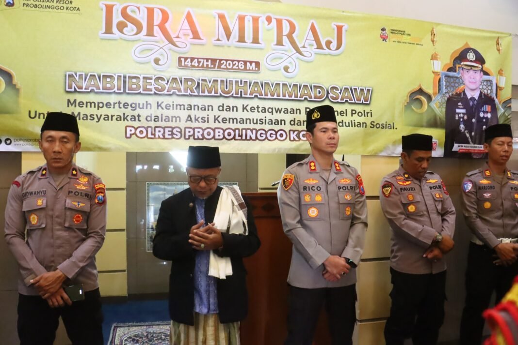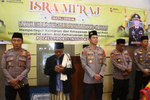 Polres Probolinggo Kota menggelar kegiatan Pembinaan Rohani dan Mental (Binrohtal) rutin dalam rangka peringatan Isra Mi’raj Nabi Muhammad SAW. Kegiatan tersebut berlangsung di Masjid Amanullah Polres Probolinggo Kota, Kamis (22/1/2026).