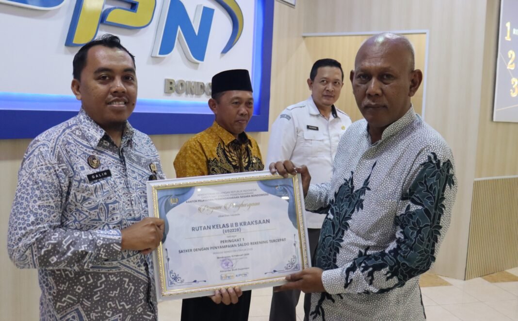 Rumah Tahanan Negara (Rutan) Kraksaan meraih tiga penghargaan dalam kegiatan Evaluasi Pelaksanaan Anggaran Semester II Tahun 2025 yang digelar KPPN Bondowoso dalam rangka Stakeholder Day, Kamis (12/02/2026).