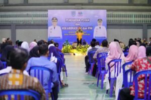 Ribuan ketua RT dan RW se-Kota Probolinggo berkumpul di GOR Mastrip Kedopok, Jumat (27/2/2026), mengikuti kegiatan Penguatan Peran dan Kolaborasi Ketua RT dan Ketua RW dalam Mewujudkan Kota Probolinggo Bersolek. Dalam momentum tersebut, Wali Kota Probolinggo dr. Aminuddin bersama Wakil Wali Kota Ina Dwi Lestari, secara simbolis menyerahkan honorarium kepada 1.030 Ketua RT dan 200 Ketua RW sebagai bentuk apresiasi atas dedikasi mereka di garda terdepan dalam melayani masyarakat.