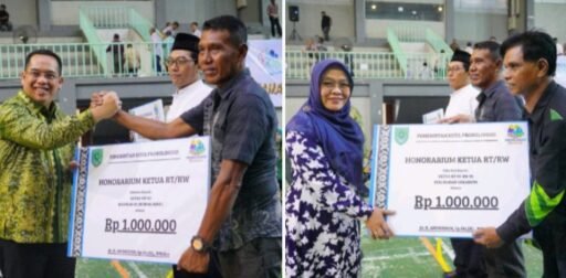 Ribuan ketua RT dan RW se-Kota Probolinggo berkumpul di GOR Mastrip Kedopok, Jumat (27/2/2026), mengikuti kegiatan Penguatan Peran dan Kolaborasi Ketua RT dan Ketua RW dalam Mewujudkan Kota Probolinggo Bersolek. Dalam momentum tersebut, Wali Kota Probolinggo dr. Aminuddin bersama Wakil Wali Kota Ina Dwi Lestari, secara simbolis menyerahkan honorarium kepada 1.030 Ketua RT dan 200 Ketua RW sebagai bentuk apresiasi atas dedikasi mereka di garda terdepan dalam melayani masyarakat.